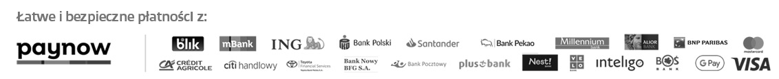 Za zamówienie możesz zapłacić płatnościami elektronicznymi – do wyboru szybkie przelewy elektroniczne, BLIK oraz płatność kartami. Płatności są bezpieczne. W koszyku możesz wybrać opcję płatności przez Tpay lub Paynow.
